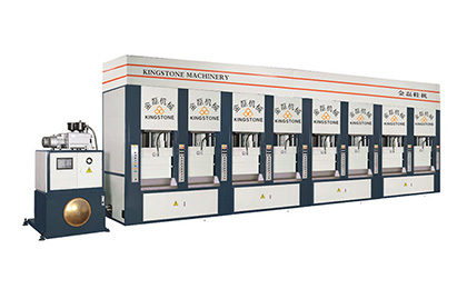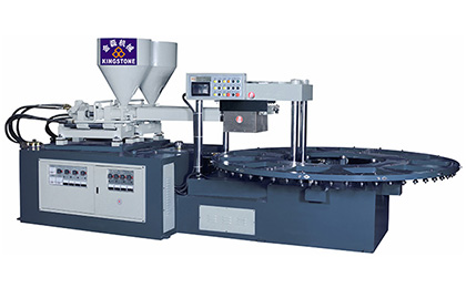等進(jìn)料到達(dá)設(shè)定量后才有慢速鎖模動作。鎖模停止后,執(zhí)行射料、開模動作。若現(xiàn)在模位不使用,按自動啟動鍵,則圓盤運行往下一有使用的模位,TPU鞋底機(jī)